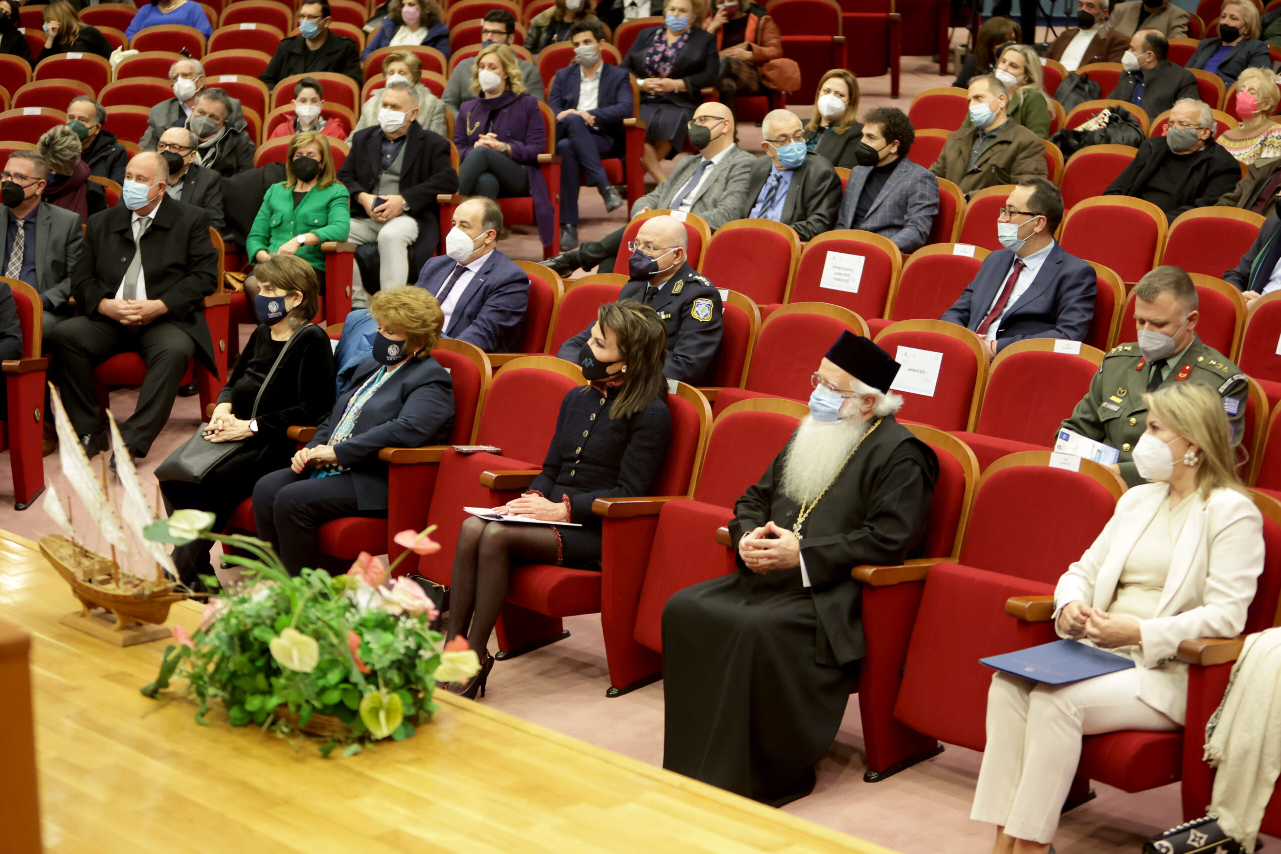 Η Πρυτάνισσα του Πανεπιστημίου Αιγαίου στην τοποθέτησή της αναφέρθηκε στη στενή και γόνιμη συνεργασία μεταξύ του Πανεπιστημίου Αιγαίου και του πολιτιστικού φορέα της Ιεράς Μητρόπολης Δημητριάδος & Αλμυρού «Μαγνήτων Κιβωτός, για τη διάσωση του πολιτιστικού αποθέματος», η οποία συνεχίζεται και σε άλλους τομείς, αναφέροντας ενδεικτικά την τιμητική για το Πανεπιστήμιο τοποθέτηση της Μαρίας Γκασούκα, αλλά και του Αλέξανδρου Καπανιάρη, στην Επιστημονική Επιτροπή της «Ακαδημίας Λαϊκού Πολιτισμού & Τοπικής Ιστορίας», που έχει δημιουργηθεί στο πλαίσιο της «Μαγνήτων Κιβωτού», η οποία αναπτύσσει ενδιαφέρουσα πολιτιστική και εκπαιδευτική δραστηριότητα. Ακόμα, η κ. Πρυτάνισσα τόνισε το πόσο σημαντικό γεγονός αποτέλεσε η οικονομική υποστήριξή της «Επιτροπής Ελλάδα 2021» για την έκδοσή του ανωτέρω εκπαιδευτικού πακέτου στο πλαίσιο των Επετειακών Εορτασμών του περασμένου έτους, καθώς και η έγκρισή του από το ΙΕΠ ως εκπαιδευτικού υλικού και για χρήση στα «Εργαστήρια Δεξιοτήτων», γεγονός που αποδεικνύει την επιστημονική του αρτιότητα. Τέλος, συνεχάρη την Ομότιμη Καθηγήτρια κ. Μαρία Γκασούκα και τον Δρ. Αλέξανδρο Καπανιάρη για το εξαιρετικό έργο τους, ενώ εξήρε και το εκπαιδευτικό και ερευνητικό έργο των Ομάδων των δημόσιων εκπαιδευτικών, γυναικών και ανδρών, της Μαγνησίας που συνέβαλαν στην παραγωγή του υλικού του πακέτου.