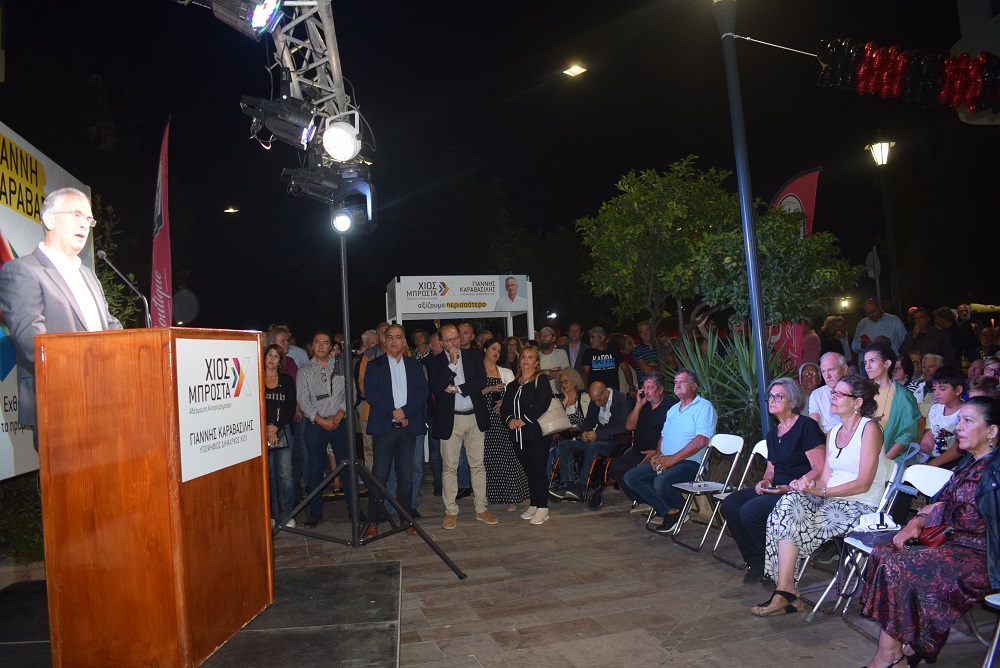 Την κεντρική του ομιλία πραγματοποίησε ο υποψήφιος Δήμαρχος Χίου Γιάννης Καραβασίλης στην Βουπάλου την Τετάρτη το απόγευμα. Στην ατζέντα τις επομενης τετραετίας δεσμεύτηκε για πόσιμο νερό, για συστηματικό πρόγραμμα ελέγχων των σχολικών μονάδων και για παιδικές χαρές με εξοπλισμό για ΑΜΕΑ.: