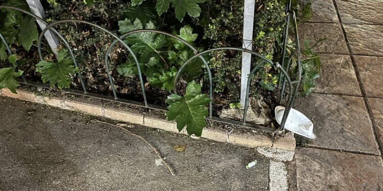 Σήμερα το απόγευμα κατά τις 19.00 περίπου, απέναντι από την Εθνική Τράπεζα κοντά στα παρτέρια με τα λουλούδια, μια κυρία σκόνταψε και πέφτοντας με φόρα το κεφάλι της πέρασε μέσα από το ακριανό σίδερο της φωτογραφίας.