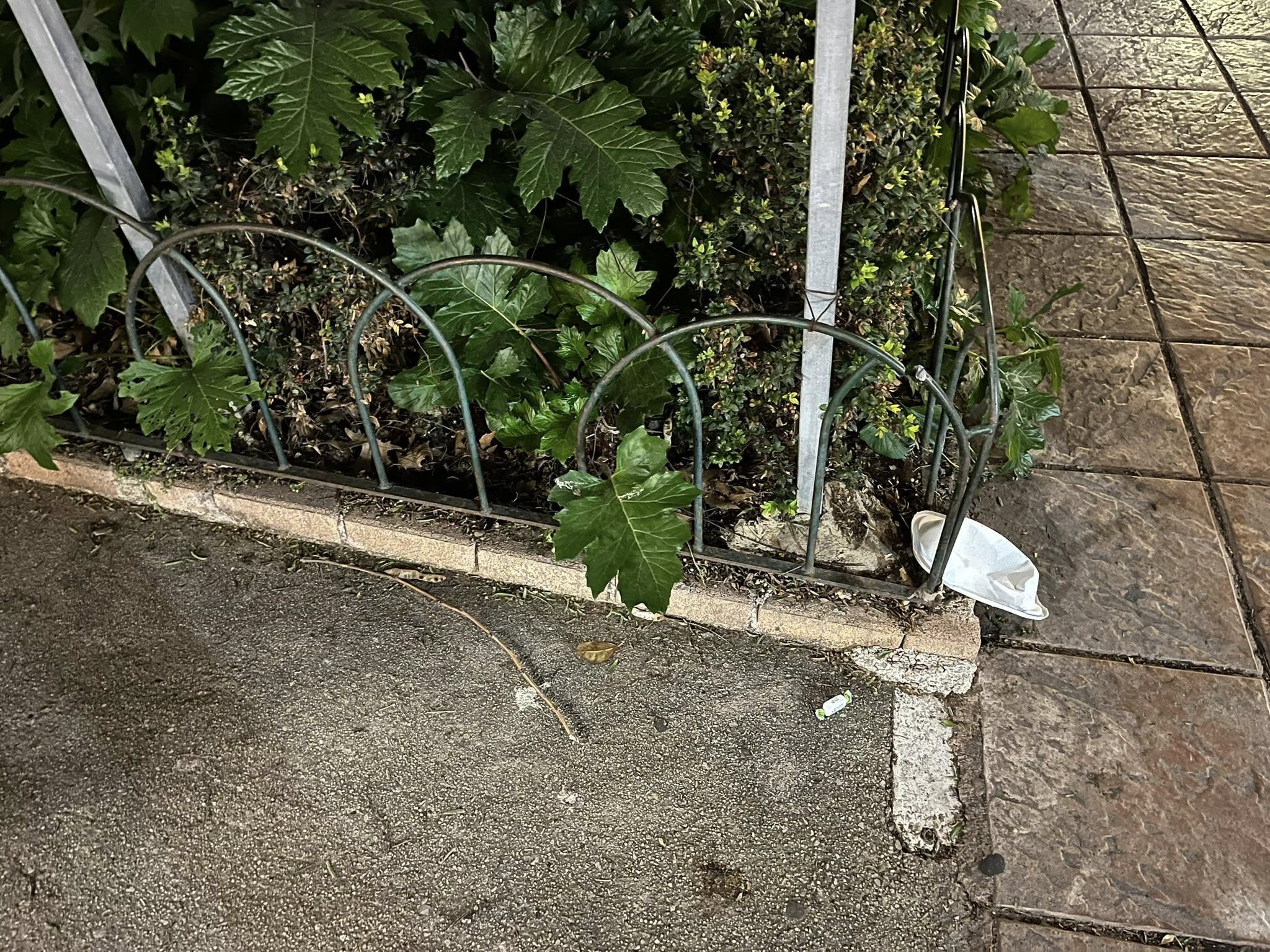 Σήμερα το απόγευμα κατά τις 19.00 περίπου, απέναντι από την Εθνική Τράπεζα κοντά στα παρτέρια με τα λουλούδια, μια κυρία σκόνταψε και πέφτοντας με φόρα το κεφάλι της πέρασε μέσα από το ακριανό σίδερο της φωτογραφίας.