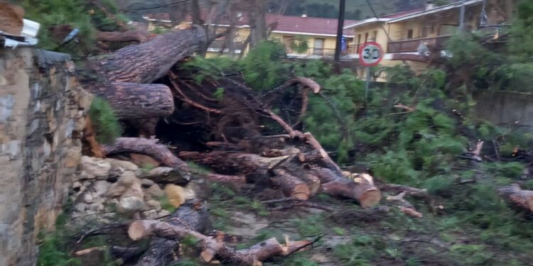 Το δέντρο κατέπεσε τα ξημερώματα εξαιτίας των έντονων καιρικών φαινομένων που επικράτησαν στην περιοχή.