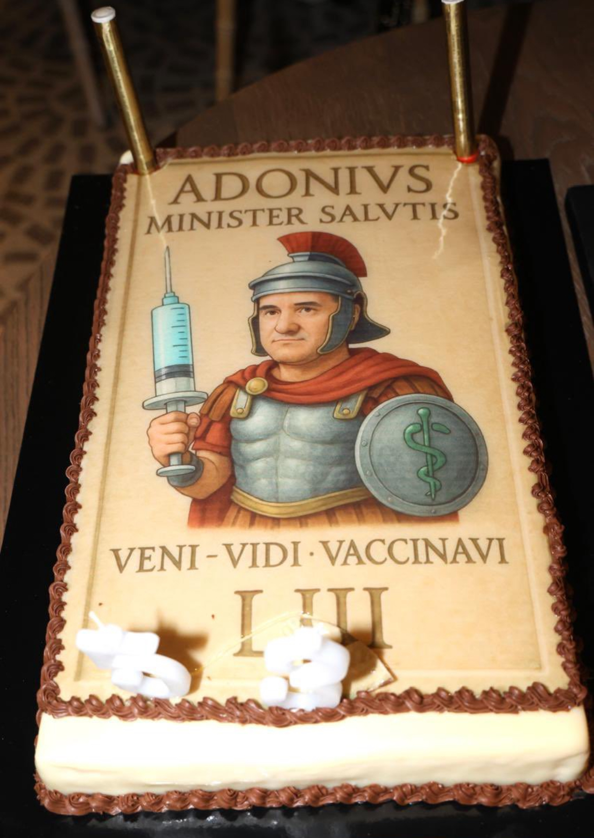 Με μία ομολογουμένως πολύ ιδιαίτερη τούρτα εξέπληξε τον Αδωνη Γεωργιαδη η σύζυγός του, Ευγενία Μανωλίδου.