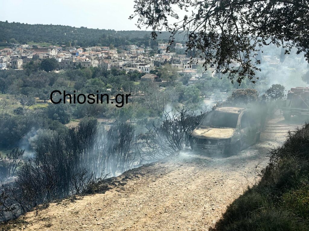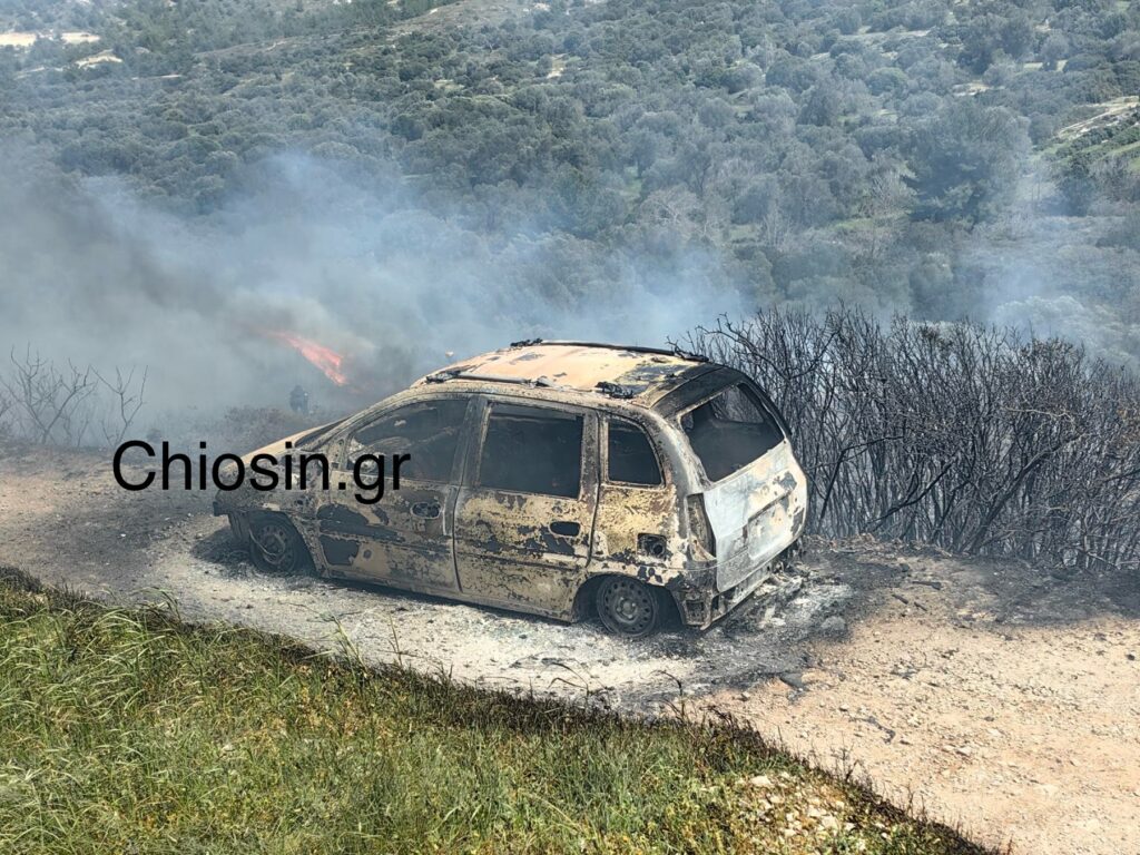 Ωστόσο στην περιοχη πνεουν ανεμοι και υπαρχουν συνεχείς αναζοπυρωσεις.Ενα ΙΧ καηκε ολοσχερως.