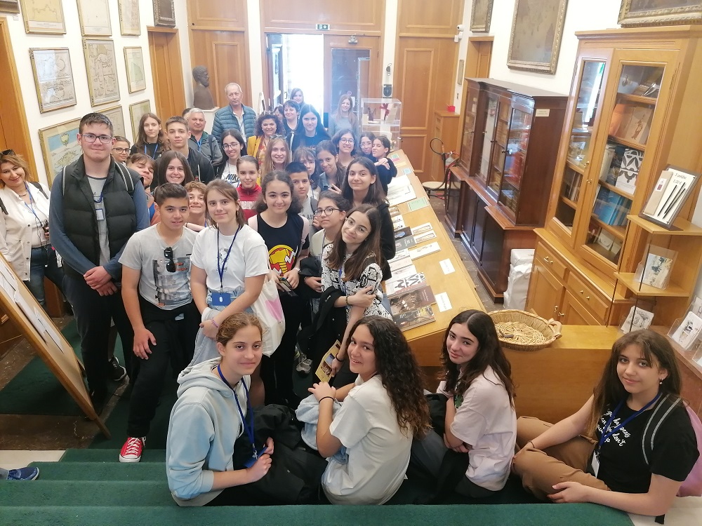 Οι φιλοξενούμενοι μαθητές και μαθήτριες έμειναν έκπληκτοι από την εικόνα της Βιβλιοθήκης και από όσα ο χρόνος τους επέτρεπε να δουν και να ακούσουν. Ξεναγήθηκαν στους χώρους της Βιβλιοθήκης από την Προϊσταμένη Άννα Χαζίρη και τον υπεύθυνο καθηκόντων ξεναγήσεων Κώστα Ζαφείρη. Οι ερωτήσεις τους πολλές και ποικίλες περιστράφηκαν στον αριθμό των βιβλίων της Βιβλιοθήκης στο πότε και πού εκδόθηκαν και με ποιο τρόπο αποκτήθηκαν.