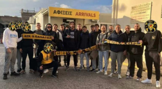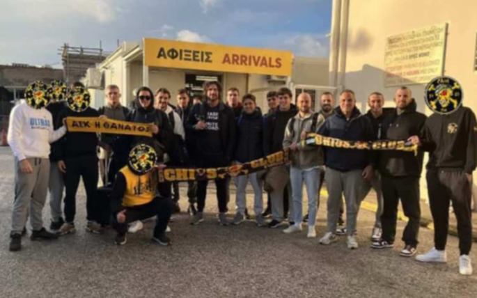 Θερμή υποδοχή επεφύλαξαν το Σάββατο το πρωί οι Χιώτες φίλαθλοι της ΑΕΚ στην ομάδα πόλο και στον super σταρ της ομάδας Κωστα Κοκκινακη. Στις 17:00 θα γίνει το ματς ΝΟΧ – ΑΕΚ στο Ιωνικό κολυμβητήριο.
