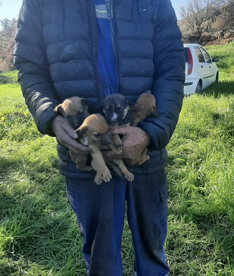 Φιλόζωη κάτοικος βρήκε πεταμένα σε χωράφι στην περιοχή Μαυρογένη στον Δαφνώνα της Χίου 4 ζωντανά κουτάβια μόλις λίγων μηνών.