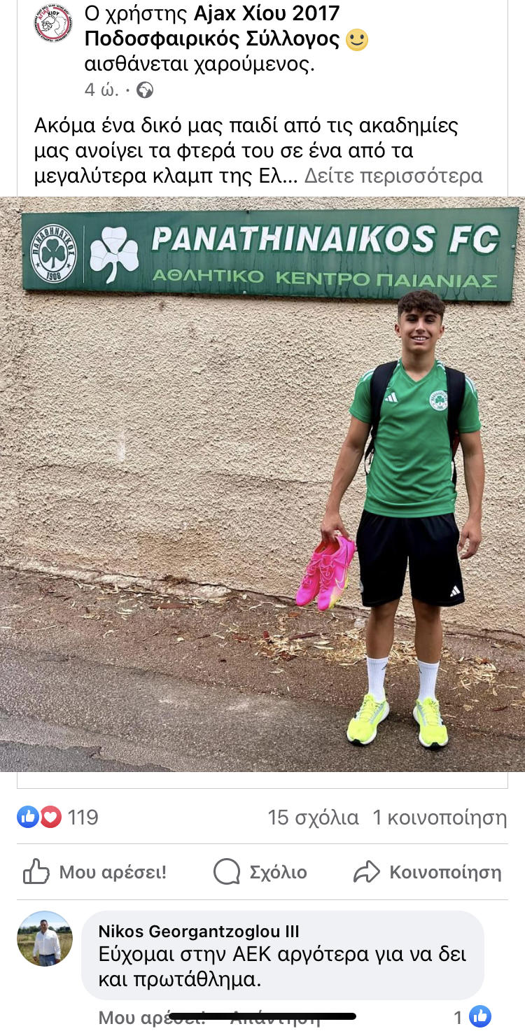 Στην σχετική ανάρτηση του Άγιαξ σχολιάζει ο π. Πρόεδρος της ερασιτεχνικής ΑΕΚ Νίκος Γεωργαντζογλου: