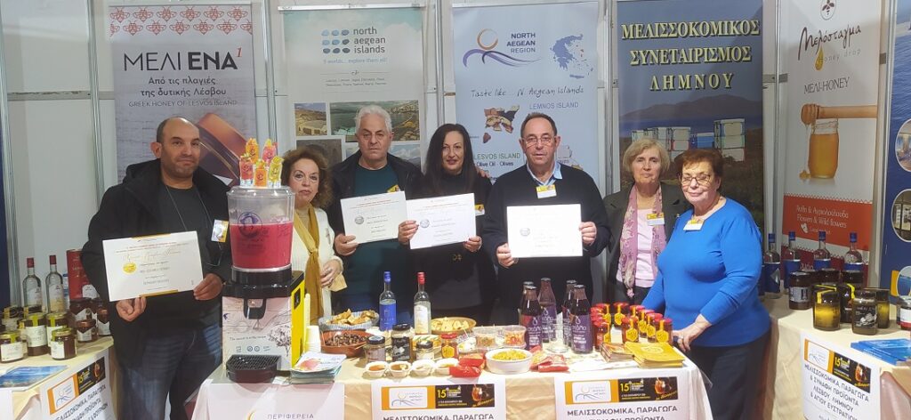 Η Περιφέρεια Βορείου Αιγαίου, συμμετέχοντας σχεδόν σε όλες τις προηγούμενες διοργανώσεις, μετά τα πολλά αίτημα μελισσοκομικών επιχειρήσεων & παραγωγών, έδωσε δυναμικό παρόν, προκειμένου να στηρίξει τη μελισσοκομία των νησιών.  Εντός ενός μεγάλου ενιαίου περιπτέρου 56 τ.μ., φιλοξενήθηκαν σε σχετικά διακριτούς χώρους, οι 3 περιφερειακές ενότητες με τα μελισσοκομικά & παράγωγα προϊόντα των νησιών του Βορείου Αιγαίου. Συμμετείχαν, οι περισσότερες τυποποιητικές μελισσοκομικές επιχειρήσεις του Βορείου Αιγαίου (συνεταιρισμοί, εταιρείες, ανεξάρτητοι παραγωγοί μελιού και συναφών – παράγωγων προϊόντων, κ.ο.κ.), προκειμένου να προωθήσουν τα προϊόντα τους σε επαγγελματίες και καταναλωτές, αλλά και να προβούν σε άμεσες λιανικές πωλήσεις.