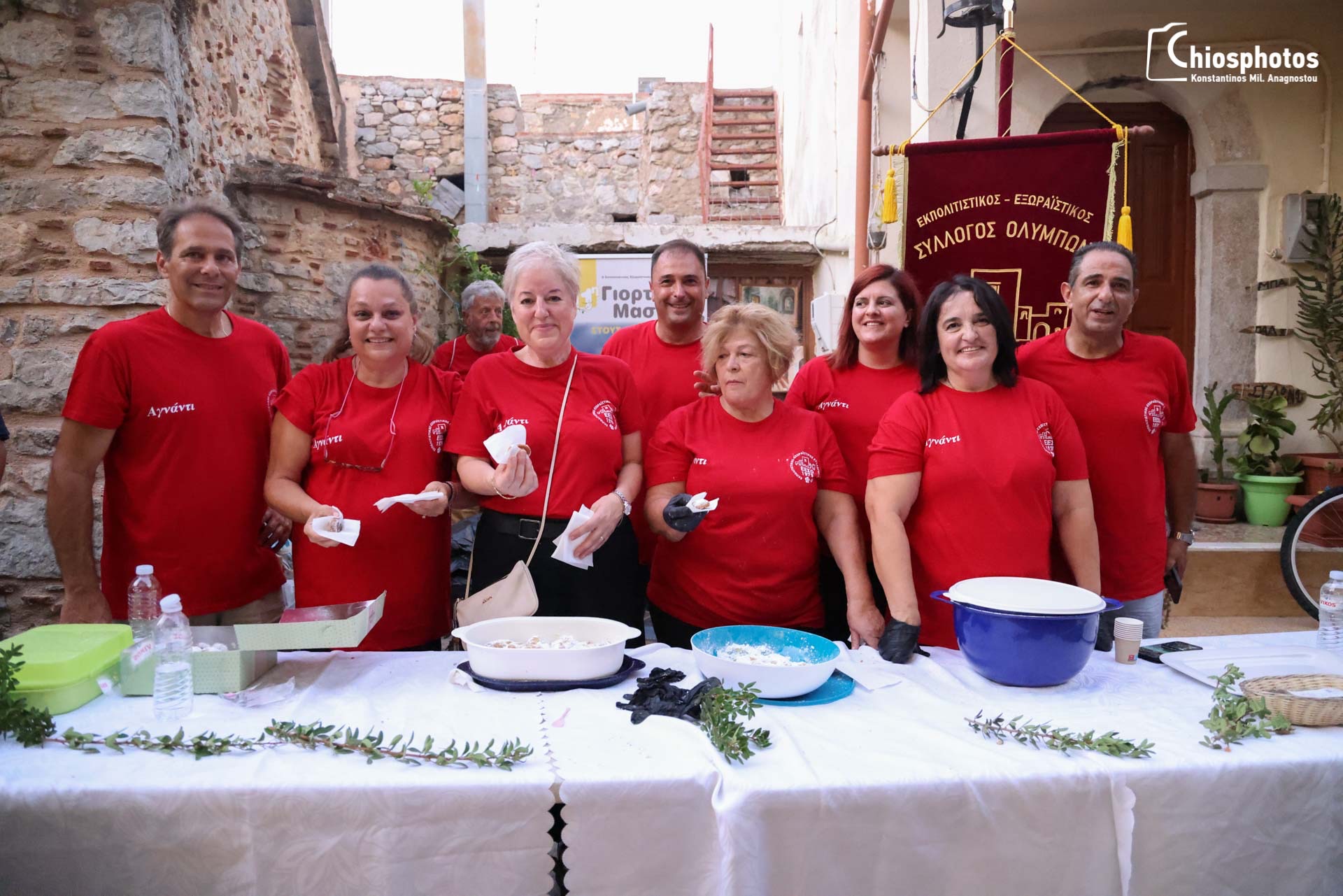 Οι επισκέπτες είχαν την ευκαιρία να περιηγηθούν στα γραφικά δρομάκια και καλντερίμια του Μεσαιωνικού καστροχωριού των Ολύμπων, να γευτούν ντόπια προϊόντα και χειροποίητα εδέσματα με μαστίχα που αποτελούν παραδοσιακές συνταγές κάθε χωριού και να μάθουν για τη διαδικασία της καλλιέργειας της Μαστίχας. Η γιορτή κορυφώθηκε στον προαύλιο χώρο του σχολείου του χωριού, όπου τα μέλη όλων των συλλόγων χόρεψαν παραδοσιακούς χορούς.