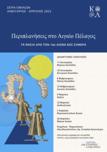 Μέσα από σπάνιο και πλούσιο εικονογραφικό υλικό, η ιστορικός και χαρισματική ξεναγός Ιόλη Βιγγοπούλου θα μας συνοδεύει σε αυτό το οδοιπορικό, για να ανακαλύψουμε τις αρχαιότητες, τη μυθολογία, τις παραδόσεις και άλλα πολλά «μυστικά» των νησιών του Αιγαίου.