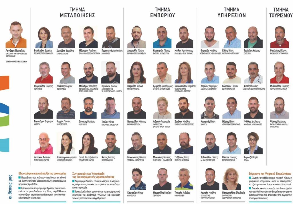 Οι υποψήφιοι του Παντελή Λεγάτου για το Επιμελητήριο Χίου για τις εκλογές στις 17 Νοεμβρίου. να θυμίσουμε ότι είναι ο μοναδικός συνδυασμός που θα είναι υποψήφιος: