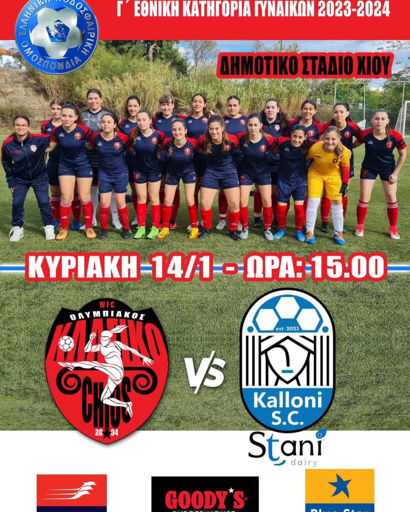 Γ’ Εθνική: Ολυμπιακός Χίου- Καλλονή Live από το Δημοτικό στάδιο Χίου: