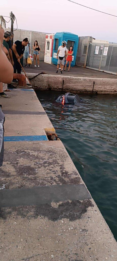 Το αυτοκίνητο έπλεε μέχρι που βούλιαξε. Αναμένεται γερανος να το ανασύρει.