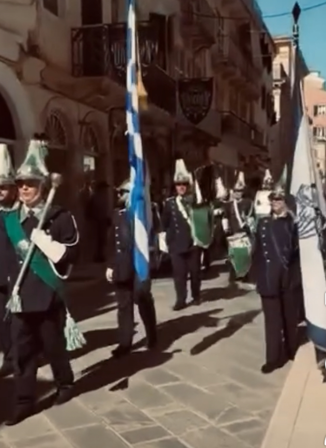 Η πομπή ακολουθεί την νοητή γραμμή των Ενετικών τειχών και προς τιμήν της παίζουν και οι 18 φιλαρμονικές του νησιού.