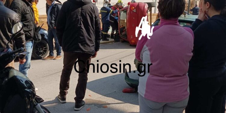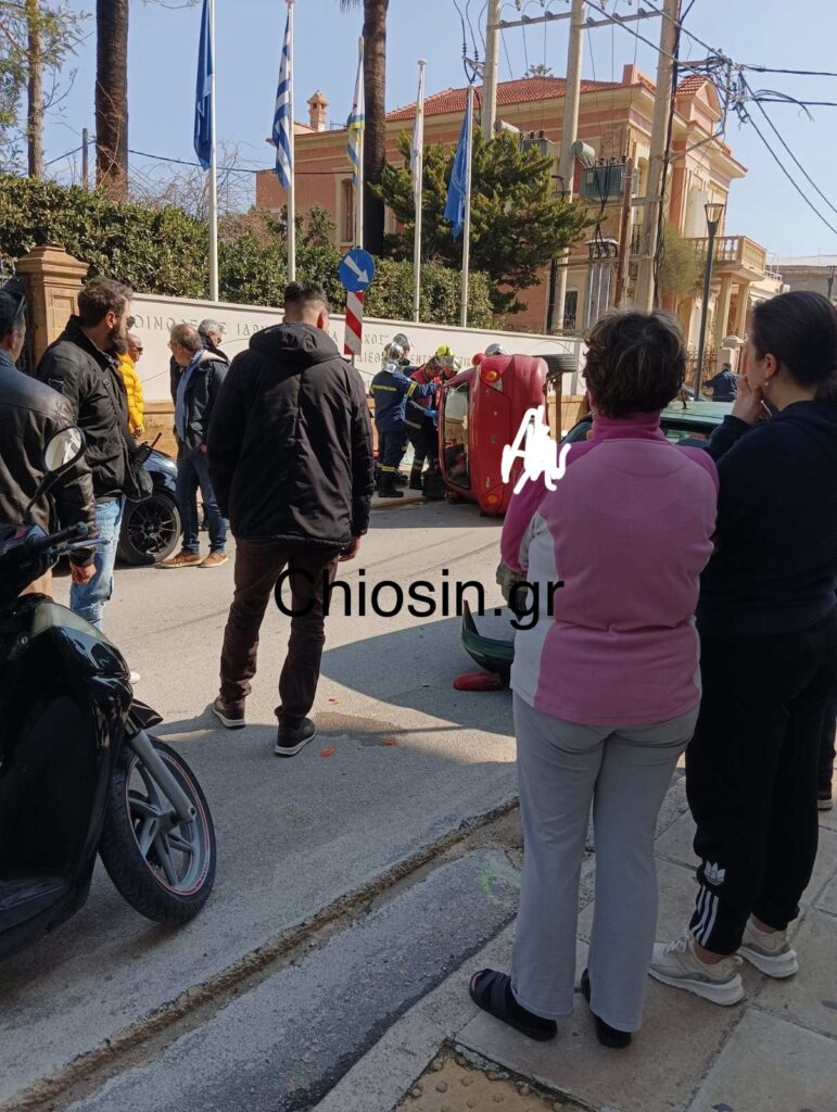 «Τούμπαρε» ΙΧ αυτοκίνητο στη Χίο και συγκεκριμένα στην οδό Λιβανού.