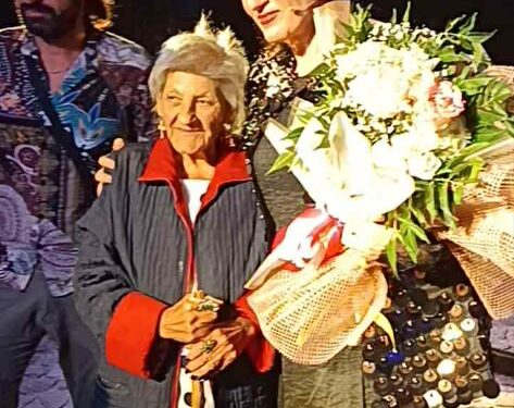 Η μοναδική κάτοικος του ερειπωμένου Ανάβατου δίνει ανθοδέσμη στην Καρυοφυλλιά Καραμπέτη (vid)