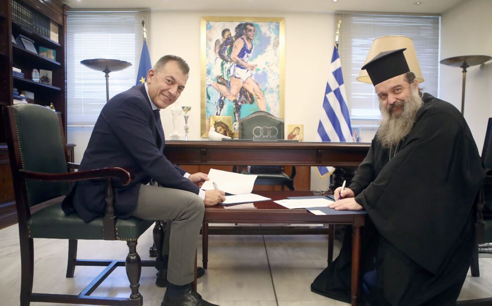 Τα Προγράμματα και οι Εκδηλώσεις Άθλησης για Όλους (Π.Α.γ.Ο και Ε.Α.γ.Ο) διευρύνονται και μέσω της Εκκλησίας της Ελλάδος, καθώς ο Αναπληρωτής Υπουργός Αθλητισμού, Γιάννης Βρούτσης και ο Σεβασμιώτατος Μητροπολίτης Χίου, Ψαρών και Οινουσσών, κ. Μάρκος (Πρόεδρος της Ειδικής Συνοδικής Επιτροπής Αθλητισμού της Διαρκούς Ιεράς Συνόδου) υπέγραψαν Μνημόνιο Συνεργασίας για την υλοποίησή τους.
