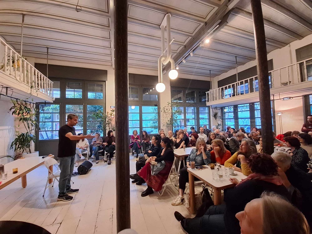 Κατόπιν το κοινό τον κατέκλυσε με ερωτήσεις για παλαιότερα και νεότερα βιβλία
