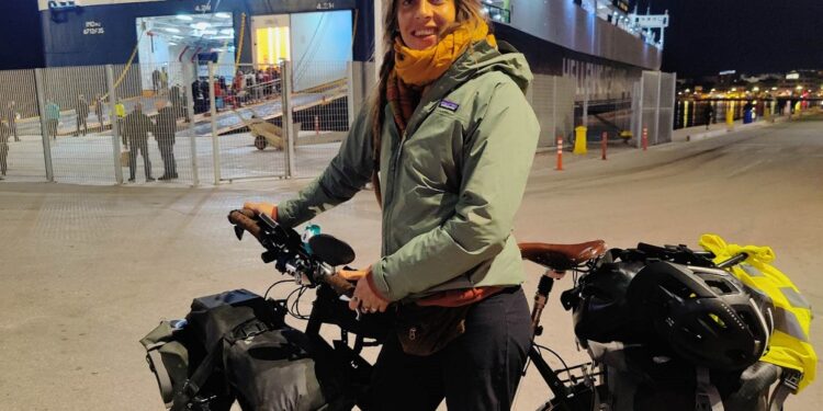 Ξεκίνησε από την Γαλλία και συγκεκριμένα από τα Πυρηναία όρη που μένει στις 25 Οκτωβρίου 2022 μόνο με το ποδήλατο της. Αφού διέσχισε όλη την Ευρώπη (ένα μήνα στην Ιταλία)  την Παρασκευή το βράδυ την εντοπίσαμε στο λιμάνι της Χίου στον δρόμο για το Τσεσμέ και την Τουρκία.