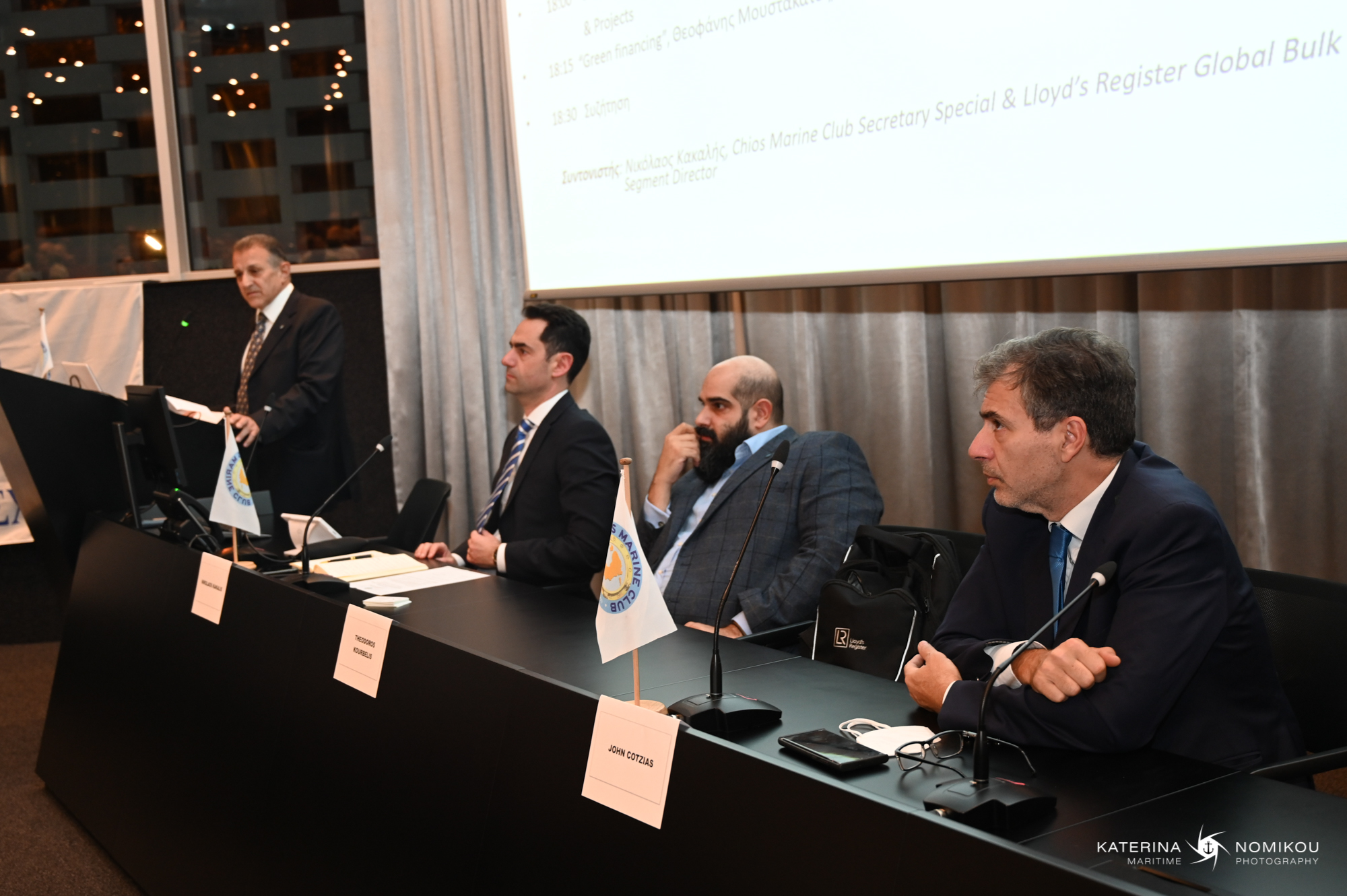 Nikos Kakalis, Chios Marine Club Secretary Special and Lloyd’s Register Global Bulk Carriers Segment Director moderated the event, outlining that “the adoption of new environmental targets and regulations adds another dimension of complexity to the existing high market volatility, the geopolitical situations and the energy crisis”. Kakalis said that “technology and fuels on-board, fleet deployment and allocation, optimal operation, performance monitoring and digitilisation, crew training, are only fraction of the aspects that need to be considered from a different view-point. That is why engagement of wider industry stakeholders is a must to understand the new landscape better and identify possible pathways for navigating through”.