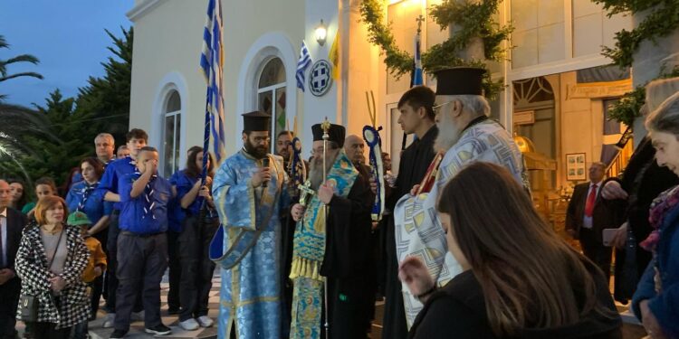 Κατά τον Μεθεόρτιο Εσπερινό και τη λιτάνευση της Ι. Εικόνος στο πέρας της οποίας ο Σεβασμιώτατος κάλεσε τους πιστούς να ψάλουν τον ΕΘΝΙΚΟ ΥΜΝΟ και υπενθύμισε τα λόγια του Θ. Κολοκοτρώνη ” εμείς θέλουμε μια πατρίδα, που κεφαλή της θα έχει τον ΧΡΙΣΤΌ “.