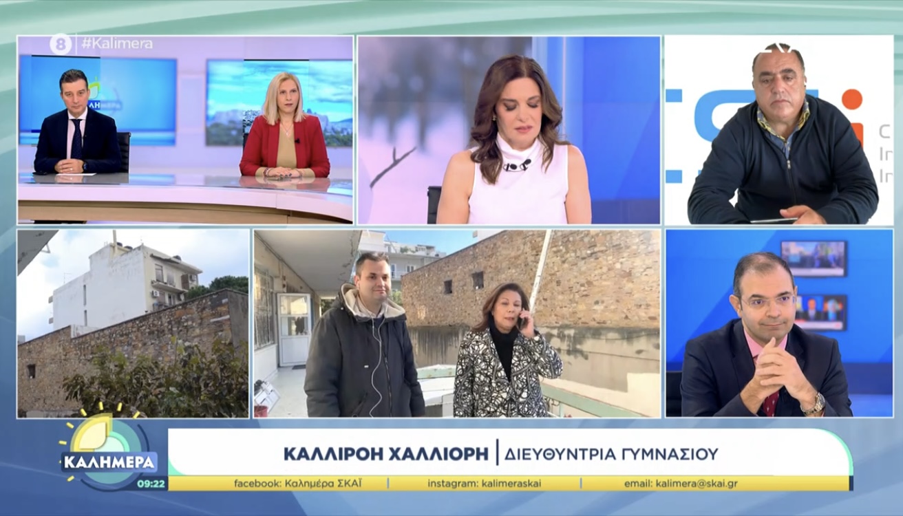 Στην εκπομπή της Φαιης Μαυραγαννη Καλημερα στον ΣΚΑΙ παρουσιάστηκε μαζί με την πτώση μπαλκονιού και το κτιριακό προβλημα καθως τα παιδιά κάνουν μάθημα σε κοντέινερ.