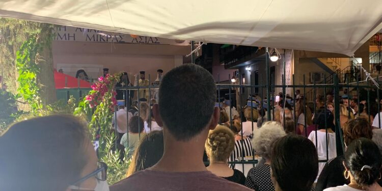 Είχε προηγηθεί η Λιτανεία της Ιεράς εικόνας της Αγίας ενώ το Λιμενικό και σκάφη απέδωσαν τιμές. Ακολούθως το Ν. Ρόδος χαιρέτησε δια θαλάσσης.