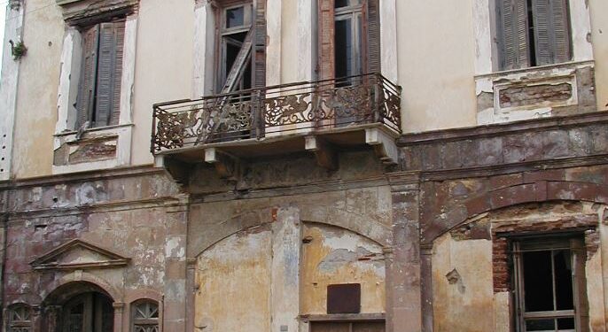 Το κτίριο των δίδυμων σπιτιών, η εικόνα του οποίου σώζεται πλέον μόνο σε