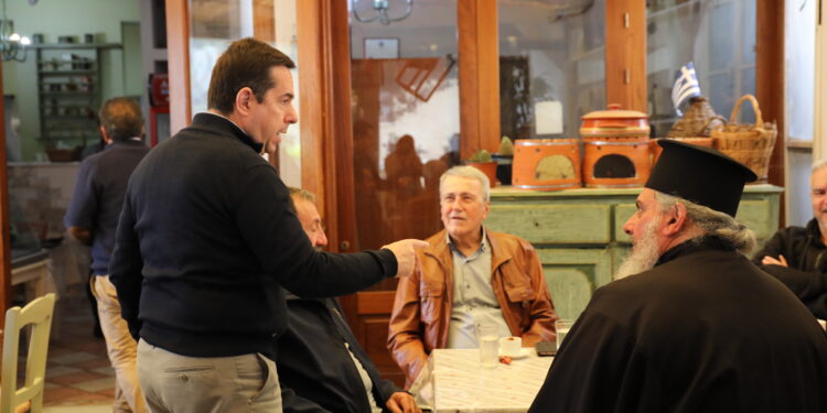 Ειδικότερα, ο κ. Μηταράκης επισκέφθηκε τη Βολισσό, όπου παρακολούθησε τη θεία λειτουργία στον Ιερό Ναό Μεταμορφώσεως Σωτήρος Χριστού, ενώ αργότερα συναντήθηκε με κατοίκους σε καφενείο του χωριού, όπου τους παρουσίασε το κυβερνητικό έργο της Νέας Δημοκρατίας.