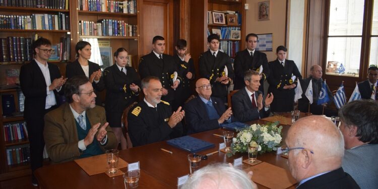 Υπογράφηκε το μεσημέρι της Τετάρτης το μνημόνιο συνεργασίας μεταξύ της Ναυτικής Ακαδημίας Εμπορικού Ναυτικού TEENS (ΤΣΑΚΟΣ ΕΛΛΗΝΙΚΑ ΕΚΠΑΙΔΕΥΤΗΡΙΑ ΝΑΥΤΙΚΩΝ ΣΠΟΥΔΩΝ) και της Ναυτικής Ακαδημίας της Ουρουγουάης (Escuela Naval de la República Oriental del Uruguay), σε τελετή στο Κοινωφελές Ίδρυμα “Μαρία Τσάκος”.