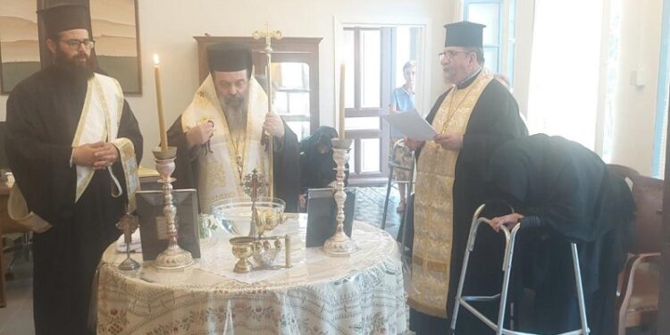 Ὁ Σεβασμιώτατος Μητροπολίτης μας, πνευματικὸς προστάτης τῆς Μονῆς, κ.κ. Μᾶρκος, λίαν συγκεκινημένος ἐτέλεσε κατὰ τὸ Τυπικὸν τῆς Ἐκκλησίας τὸν ἁγιασμὸν ἐπὶ τοῖς ἐγκαινίοις τῆς Βιβλιοθήκης τῆς Ἱ. Μονῆς, μὲ τὴν παρουσία καὶ τὴν προσευχητικὴν συνδρομὴν τοῦ Ἀρχιδιακόνου τῆς Μητροπόλεώς μας π. Ἀποστόλου Λάρδα καὶ τοῦ Πρωτοπρεσβυτέρου π. Παντελεήμονος Καλεώδη. Τὰ τῆς σεμνῆς τελετῆς καὶ τῆς μοναστηριακῆς δοχῆς ἐπεμελήθη ἡ φιλόξενος Ἀδελφότης τῆς Ἱ. Μονῆς ὑπὸ τὴν πεπνυμένην καθοδήγησιν τῆς Ὁσιωτάτης Μητρὸς καὶ Καθηγουμένης των Δοσιθέας μοναχῆς.