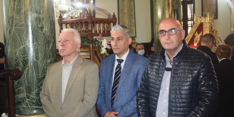 Ο Περιφερειάρχης Βορείου Αιγαίου Κωνσταντίνος Μουτζούρης , συνοδευόμενος από τον Αντιπεριφερειάρχη Ν. Λέσβου Πανάγο Κουφέλο και τον Εκτελεστικό Γραμματέα Απόστολο Αλατζά, παρακολούθησαν σήμερα 26.10.2022 την Θεία Λειτουργία στον Ι. Ν. Αγίου Δημητρίου στη Μόρια επί της εορτής του Αγίου.