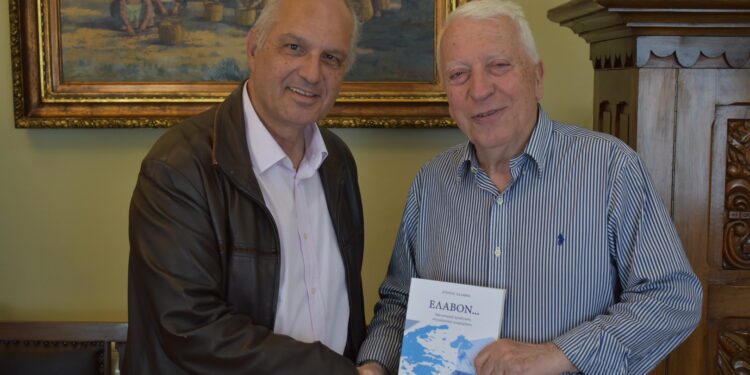 Ο Περιφερειάρχης Βορείου Αιγαίου Κωνσταντίνος Μουτζούρης με αφορμή την κυκλοφορία του βιβλίου ΈΛΑΒΟΝ του Στρατή Σαλαβού, το οποίο αναφέρεται στις εκλογικές αναμετρήσεις στην Λέσβο αλλά και στην Ελλάδα, συναντήθηκε σήμερα 08.05.2023 μαζί του και τον συνεχάρη για την εκδοτική προσπάθειά του.