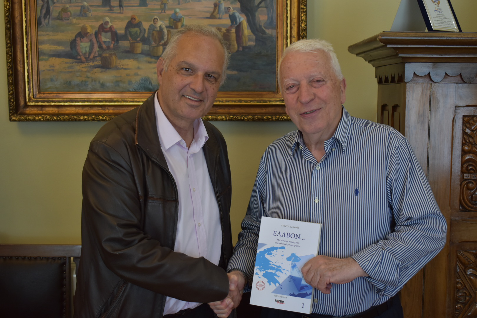 Ο Περιφερειάρχης Βορείου Αιγαίου Κωνσταντίνος Μουτζούρης με αφορμή την κυκλοφορία του βιβλίου ΈΛΑΒΟΝ του Στρατή Σαλαβού, το οποίο αναφέρεται στις εκλογικές αναμετρήσεις στην Λέσβο αλλά και στην Ελλάδα, συναντήθηκε σήμερα 08.05.2023 μαζί του και τον συνεχάρη για την εκδοτική προσπάθειά του.