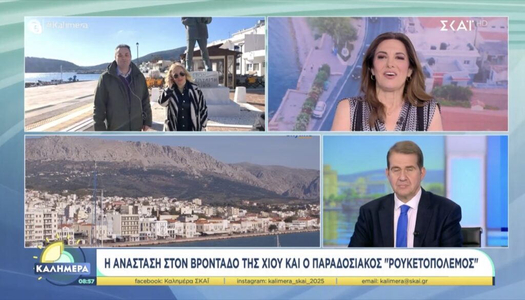 Ζωντανή σύνδεση με τα Καρδάμυλα είχε η εκπομπή του ΣΚΑΙ Καλημέρα την Κυριακη των Βαιων με την Φαίη Μαυραγανη.