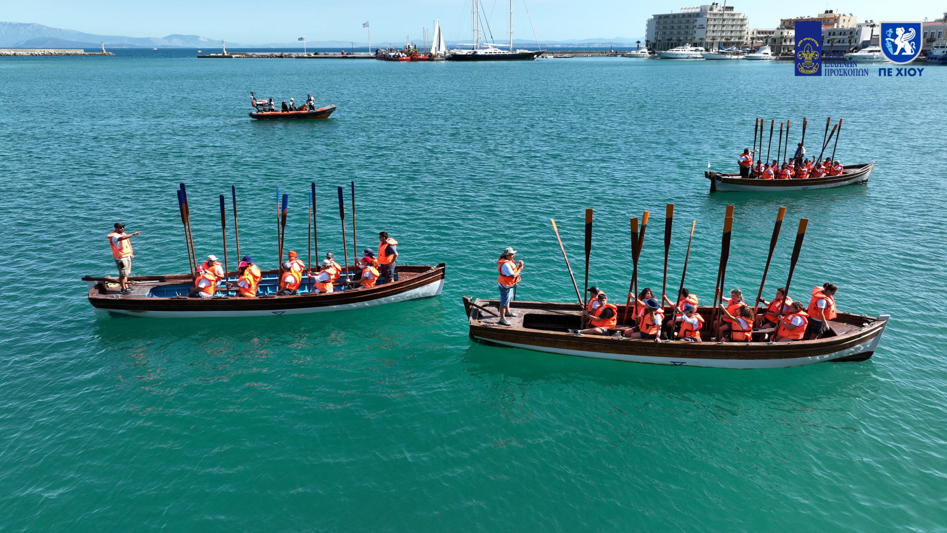 Οι τρείς ναυτοπροσκοπικές λέμβοι «Πάνος», «Τρίτων» και «Αιγέας» είναι ξύλινα παραδοσιακά 10κωπα σκάφη «φαλαινίδες», αποτελούν σημαντικό μέσο εφαρμογής του προσκοπικού προγράμματος και συμβάλουν εκτός των άλλων στην καλλιέργεια οργάνωσης και ομαδικότητας των παιδιών. Οι Πρόσκοποι (αγόρια και κορίτσια ηλικίας 11-15 ετών) από τα Προσκοπικά Συστήματα του νησιού μας θα ζωντανέψουν με τα παραγγέλματα, τη δράση και τον ενθουσιασμό τους έναν αγώνα άμιλλας, όπου θα δοκιμάσουν την ταχύτητα, την δεξιότητα και την αντοχή τους, κωπηλατώντας τις τρεις «φαλαινίδες» προσφέροντας ένα όμορφο θέαμα σε όσους θα βρεθούν να τους παρακολουθούν από την προκυμαία της Χίου.