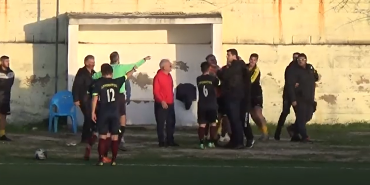 Καρέ-καρέ η σύρραξη παικτών πάγκου του Κανάρη και του Ατρόμητου μόλις ισοφάρισε ο Ατρόμητος. Το ματς διακόπηκε για 5 λεπτά μέχρι να ηρεμήσουν τα πνεύματα και με 5 αποβολές: