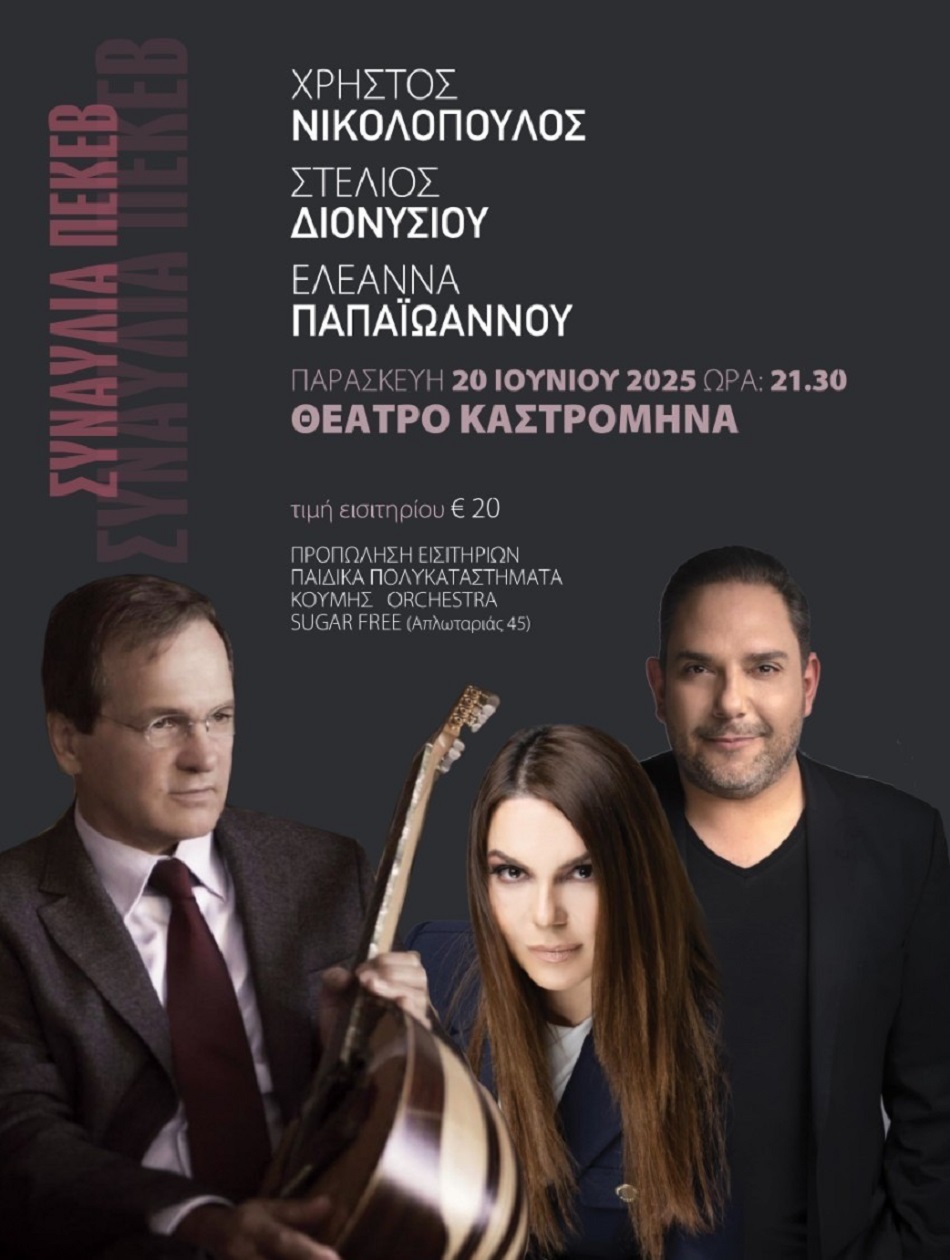 τριήμερο γεμάτο μουσική, γλέντια και χαρές στις 20-21-22 Ιουνίου. Στις 20 Ιουνίου στο θέατρο Καστρομηνά στις 21:30 συναυλία με τον