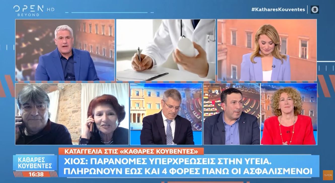 Στην εκπομπή «Καθαρές Κουβέντες» του OPEN, ο Στέλιος Κουμπιάς και η Ρούλα Γιαννούλη ανοίγουν ένα ιδιαίτερα σοβαρό θέμα που αφορά χιλιάδες πολίτες: τις υπερχρεώσεις στον χώρο της υγείας. Σε μια περίοδο όπου οι οικογένειες δοκιμάζονται οικονομικά, κάθε αδικαιολόγητη επιβάρυνση σε ιατρικές υπηρεσίες, εξετάσεις ή νοσηλείες δημιουργεί ακόμη μεγαλύτερη ανασφάλεια και αγανάκτηση.