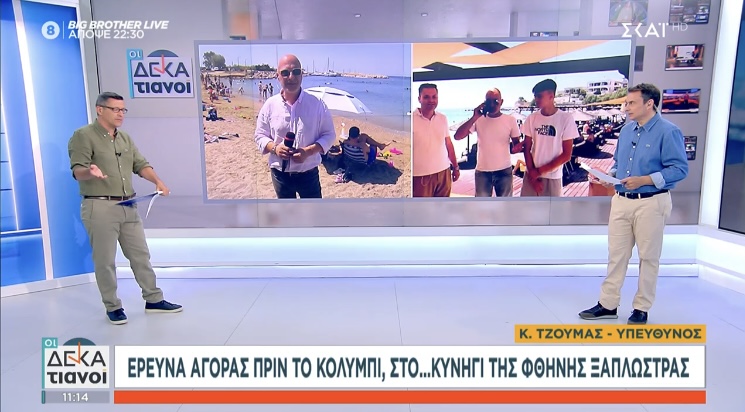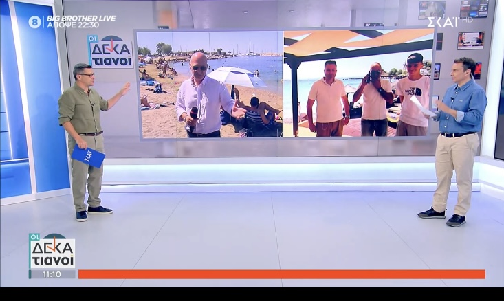Την ώρα που το μπάνιο στην Ανάβυσσο κοστίζει σχεδόν 100€ η εκπομπή Δεκατιανοι με τον Γιώργο Γρηγοριαδη και τον Γιάννη Πιτταρα είχε απευθείας σύνδεση με τη Χίο και τον Νίκο Ζερβοπουλο από τον Όρμο Λω στον Βροντάδο.