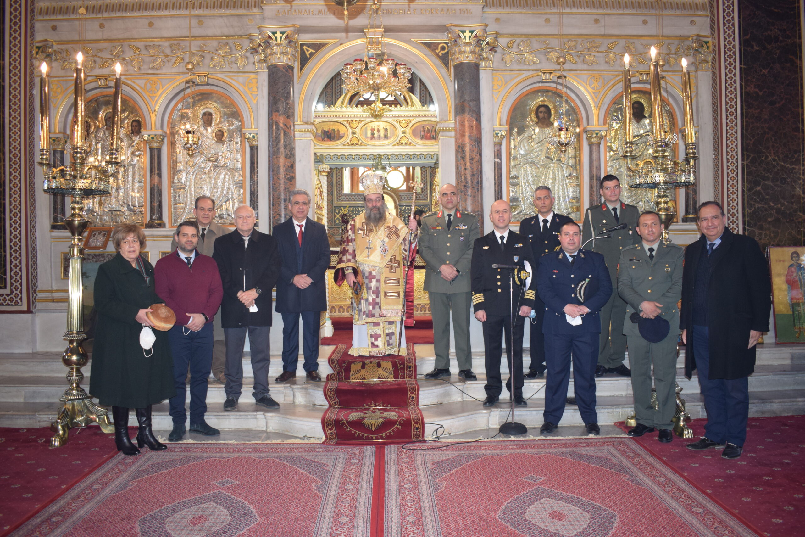 Ο Μητροπολίτης Χίου κκ. Μάρκος έχοντας δίπλα του τις Στρατιωτικές αρχές, τον Αντιπριφερειάρχη Χίου κ. Παντελή Βρουλή, τον Αντιπεριφερειάρχη Παιδείας κ. Στέλιο Καμπούρη, τον Δήμαρχο Χίου κ. Σταμάτη Κάρμαντζη, τον Αντιδήμαρχο τουρισμού κ. Κώστα Βεργίνα και τον Διευθυντή της ΔΔΕ κ. Αιμιλιανό Ευαγγελινό στο μήνυμα του αναφέρθηκε στην ενότητα των Αρχών για το καλό της Χίου πέρα από τα προσωπικά συμφέροντα. Το πάτερ υμών απήγγειλε ο διοικητής της 96 ΑΔΤΕ “Χίος” Κωνσταντίνος Κολοκοτρώνης που από χθες το βράδυ προήχθη στον βαθμό του Υποστράτηγου.
