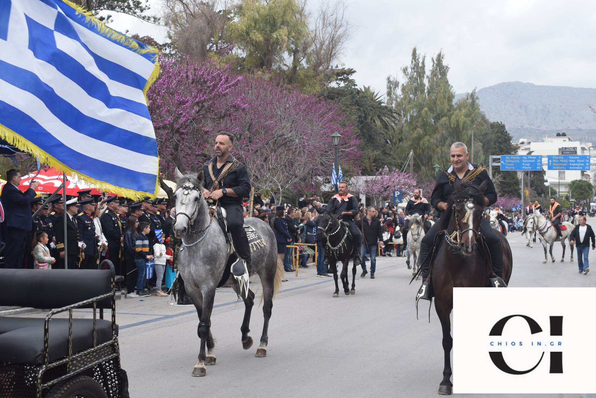 Η Παρέλαση 25ης Μαρτίου 2024 στη Χίο πραγματοποιήθηκε στις 12 το μεσημέρι στην οδό Δημοκρατίας, παρουσία εκατοντάδων συμπολιτών μας. Μαθητές και μαθήτριες της Α’βάθμιας και Β’Βάθμιας εκπαίδευσης, σπουδαστές της ΑΕΝ Μηχανικών Χίου, πρόσκοποι, πολιτιστικοί και αθλητικοί σύλλογοι, Στρατός και Λιμενικό παρέλασαν υπό τους ήχους της Φιλαρμονικής του Δήμου και της Στρατιωτικής Μπάντας της 96 ΑΔΤΕ. Ξεχωριστή εμφάνιση από τον Ιππικό Όμιλο Χίου: