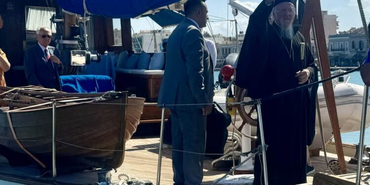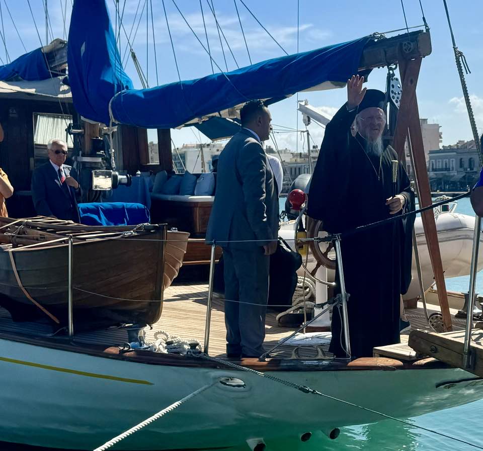 Ο συγκινητικός αποχαιρετισμός του Οικουμενικού Πατριάρχη Βαρθολομαίου στο λιμάνι της Χίου μετά από 4μερη επίσκεψη στο νησί μας.