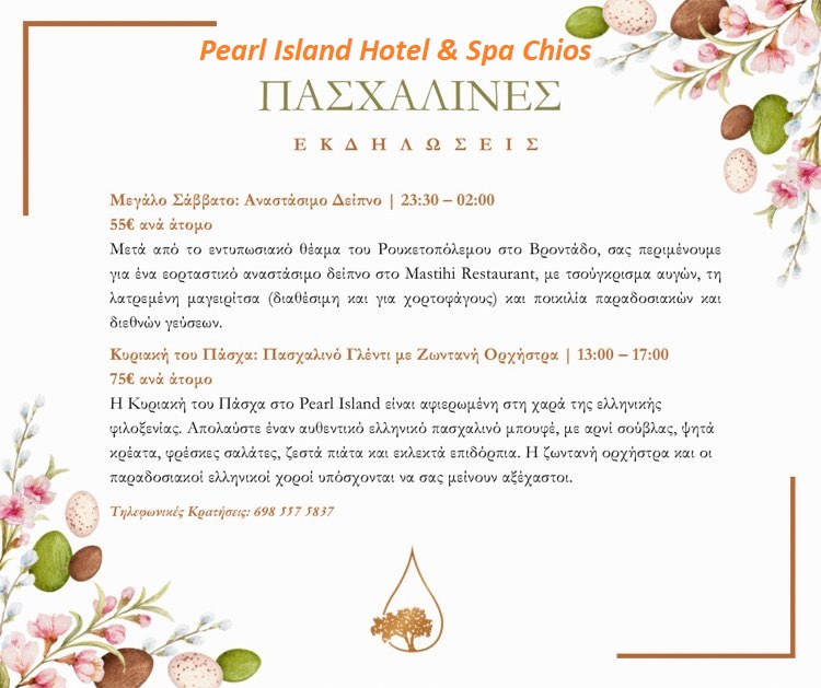Αναστάσιμο Δείπνο & Πασχαλινό γλέντι στο Pearl Island Hotel & Spa Chios