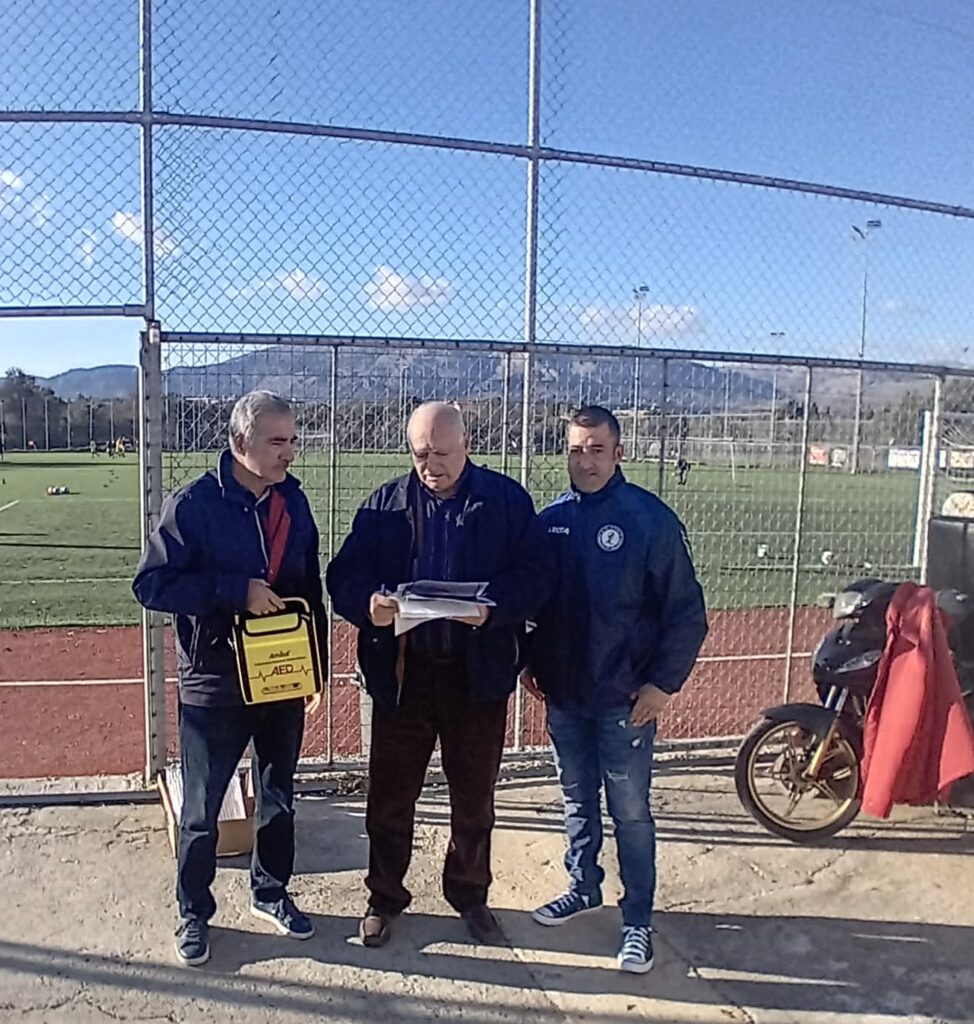 Η Περιφερειακή ενότητα Χίου παρέδωσε στην ΕΠΣ Χίου έναν ακόμα απινιδωτή στο γήπεδο Θυμιανών, πριν τον αγώνα Κυπέλλου Ατλα- Βροντάδος 1-2.