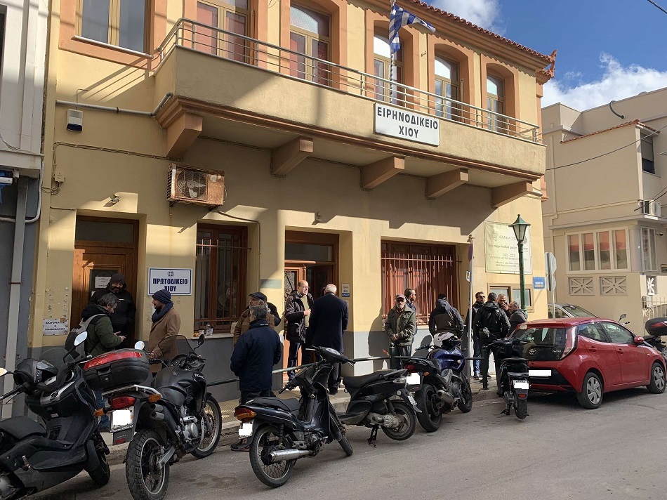 Σε εξέλιξη η δίκη ‘Πελαγίτη’ στο Πρωτοδικείο Χίου επί της Λιβανού. Η μικρή αίθουσα ασφυκτικά γεμάτη με τις καταθέσεις να έχουν ξεκινήσει.