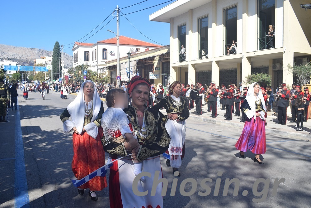 Την παράσταση έκλεψε η Χιώτισσα- Κρητικιά που παρέλασε με τον ‘Ψιλορείτη’ και το μωρό της αγκαλιά και ο μικρός τσολιάς που παρέλασε δίπλα στις Ένοπλες Δυνάμεις μας. Ακολουθούν οι σχετικές φωτογραφίες: