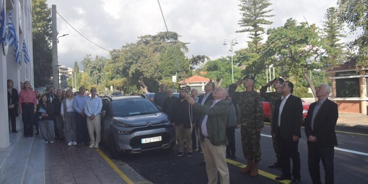 Παρουσία Περιφερειάρχη κ. Κώστα Μουτζούρη και του Διοικητή της 96 ΑΔΤΕ Ταξίαρχου Χαράλαμπου Ψαρόπουλου αναρτήθηκε στην Π.Ε. Χίου «ομοίωμα» της πρώτης χειροποίητης Σημαίας που υψώθηκε στη Χίο την Ημέρα της Απελευθέρωσης της Χίου το 1912.