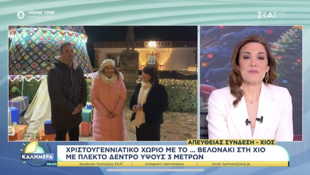 Μάλιστα η Φαίη Μαυραγάνη ανέφερε ότι το πλεκτό χειροποίητο χωριό είναι 3 μέτρα με την Βασιλεια Βερβεράκη να το διορθώνει λέγοντας ότι φέτος είναι 7,5 μέτρα. Επίσης ο Νίκος Ζερβοπουλος παρότρυνε τους τηλεθεατές να έρθουν Χίο την Πρωτοχρονιά καθως υπάρχει το έθιμο με τα καραβάκια καθως και ποικίλες εκδηλώσεις σε όλο το νησί. Δείτε όλη την σημερινή σύνδεση από τα Θυμιανά: