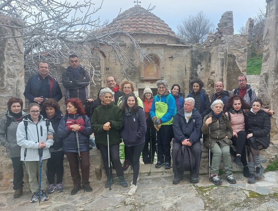 Μετά την ξενάγηση κάναμε πεζοπορία διάρκειας 3,5 ωρών με τις στάσεις σε 1 από τα 8 τμήματα συνολικού μήκους 94χλμ παλιό μονοπάτι που ένωνε το Λιθί με την Κέραμο το οποίο έχει σηματοδοτηθεί και θα αποτελέσει μελλοντικά πόλος έλξης για τους επισκέπτες του νησιού μας. Κατά την διάρκεια της πεζοπορίας διασχίσαμε από πάνω του μέσω γεφυριού τον ποταμό Μαλαγκιώτη, είδαμε την βυζαντινό ναό του Αγίου Γεωργίου των Βασιλικών και την Παναγία των Μύλων και είχαμε θέα το Πεληναίο και το Αιγαίο.